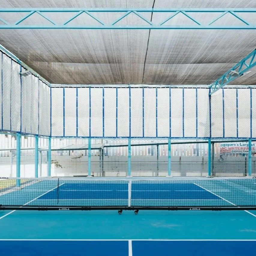 Play cool, even in the midday sun. Our custom-engineered shades shield 80% of UV rays and heat, providing a comfortable outdoor-ventilation experience without the sweltering temperature. Crucially, the structure is designed with sufficient ceiling height, ensuring your lobs and defensive resets never hit the rafters—a rare standard for shaded facilities in Singapore.